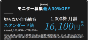アスク井上クリニックでは、期間限定で自毛植毛のモニターキャンペーンを実施しています。