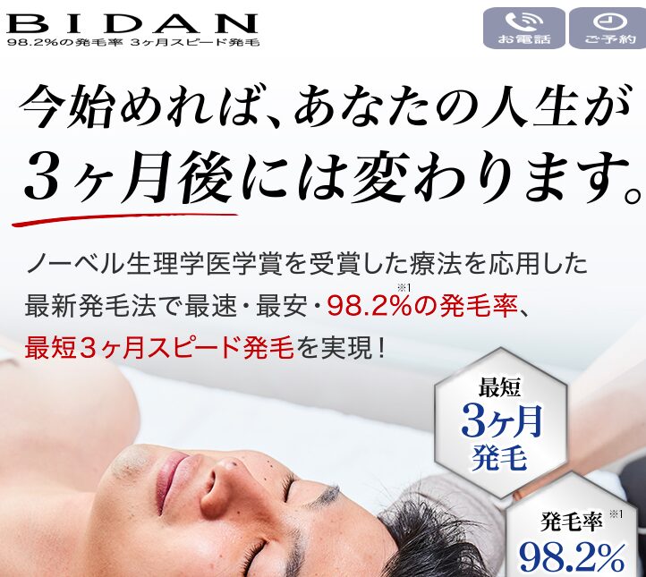 近年、副作用のリスクを抑えて髪を育てる「サロン型」の発毛サービスが注目されています。中でも【BIDAN(ビダン)】は、最短3ヶ月での発毛を目指せる実力派として人気です。
