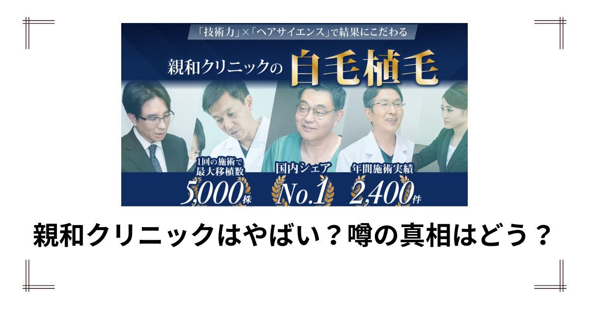 「親和クリニックってやばいの?」自毛植毛を検討している人の中には、そんな不安を抱いて検索している方も多いのではないでしょうか。